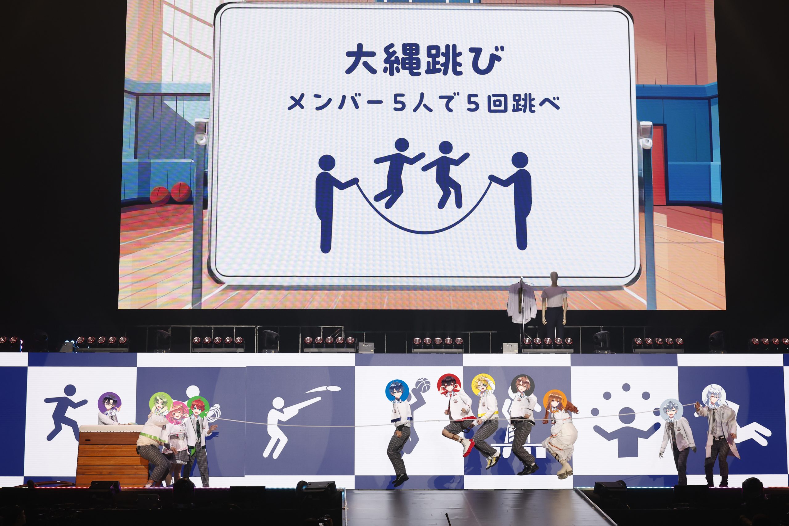 11種目「客席ゴリラを探せ」では、客席に紛れ込んだゴリラが持っている言葉「ウッホッホ」を全員で叫び、12種目の大縄跳びでは、じゃぱぱとどぬくが縄を回し、もふ、ヒロ、のあ、たっつん、うりが5回飛ぶことに成功。