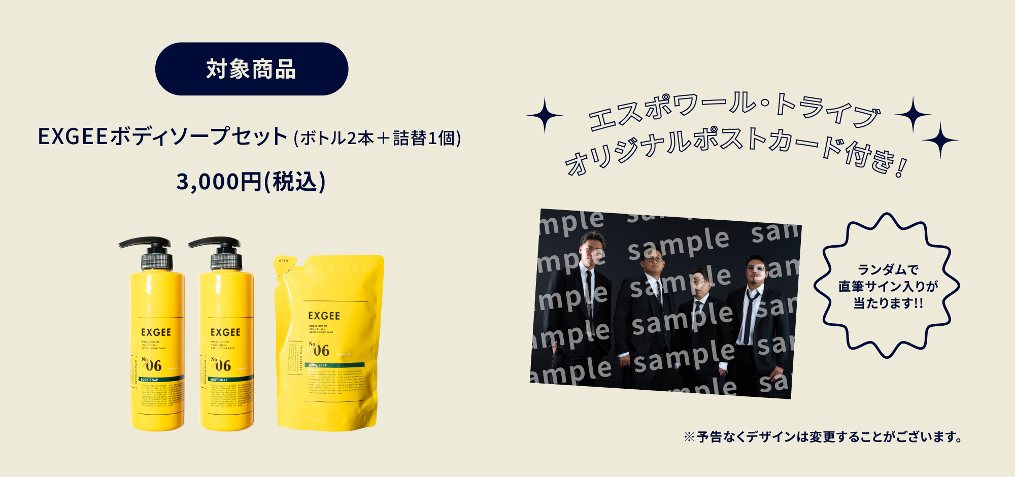 本イベントでは、当日会場にて対象商品「EXGEEボディソープセット(ボトル2本+詰替1個/税込3,000円)」をご購入いただいたお客様が、エスポワール・トライブのメンバーと一緒に写真撮影をすることができます。