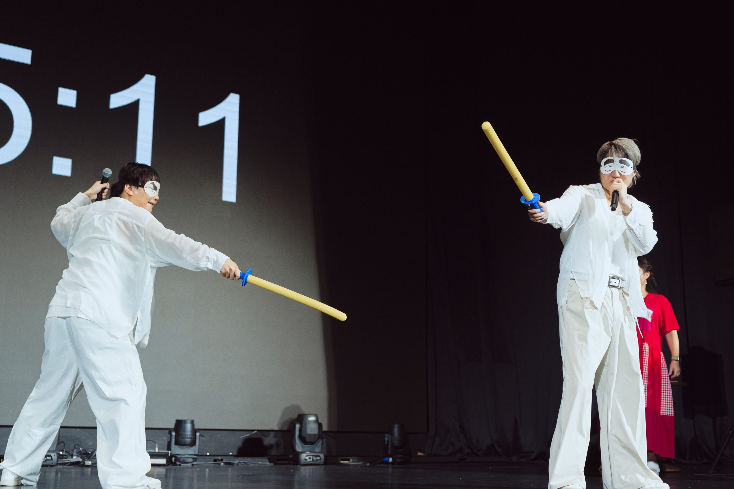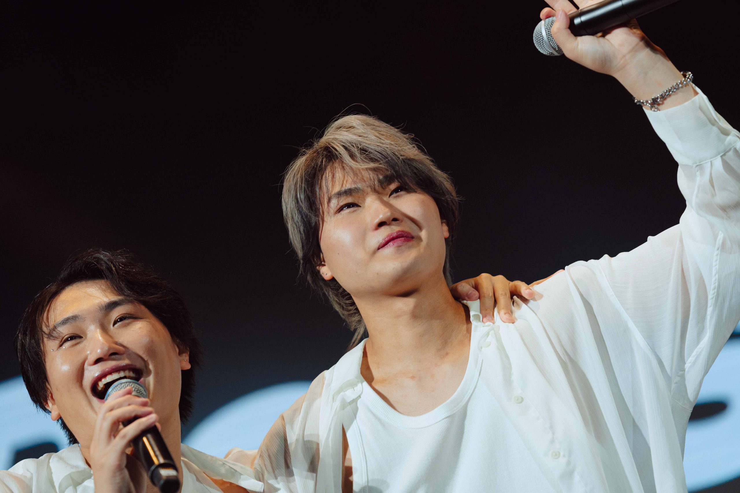 キレッキレのダンスで魅了し、華麗なターンを決めました。続いて登場したすずさんは、いつもの甘いスマイルを封印して、ちょい強めの表情でラップをキメるギャップで魅了。こうさんのハイトーンボイスも釘付けになってしまい、この振り幅こそがすずしょうとの魅力です。