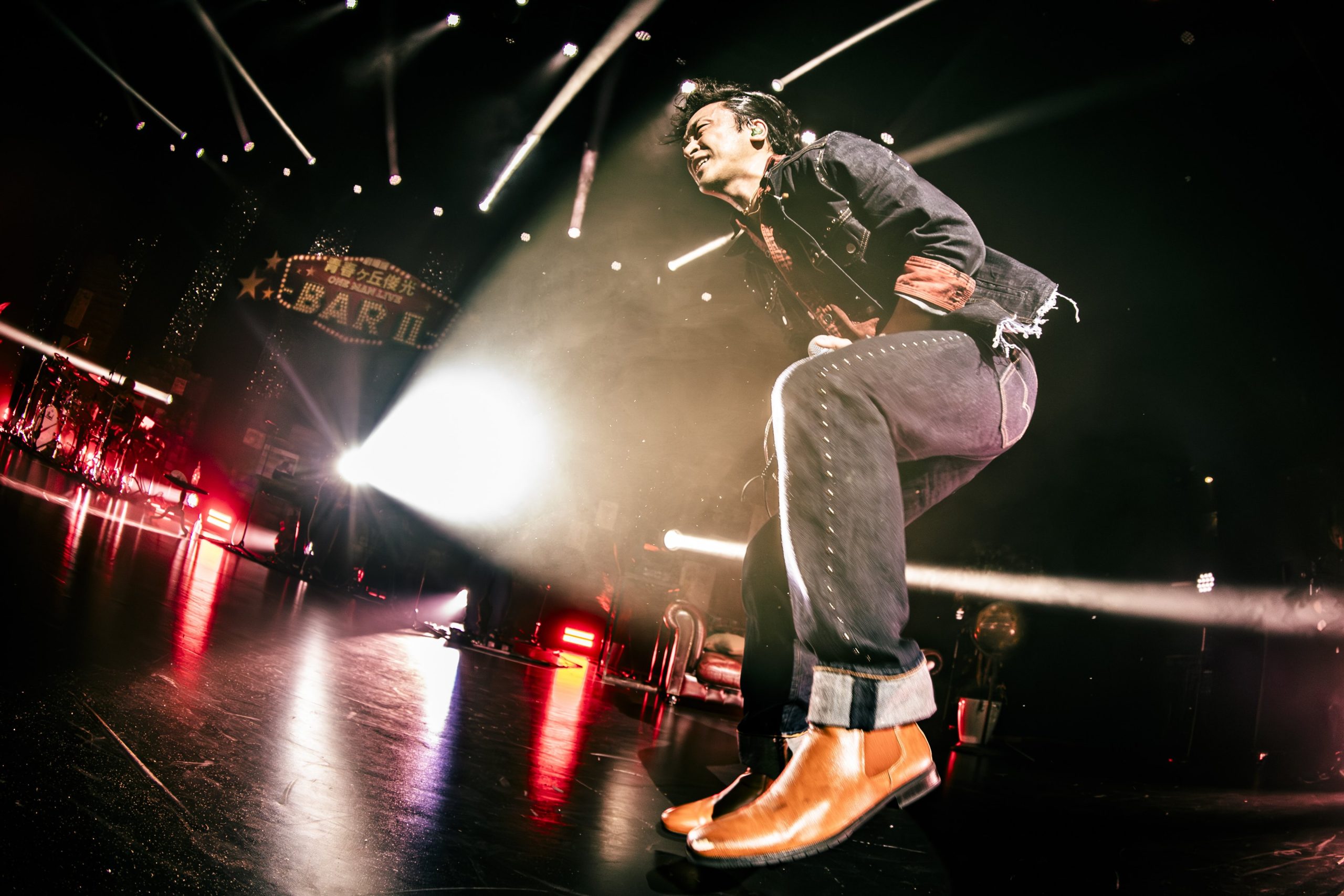 そのあとのMCでは、ステージ上に設置されたバーカウンターの椅子に腰掛け、「置いてあるワインボトルは、俺が実際に飲んだやつ」と、裏話をトークする場面も。