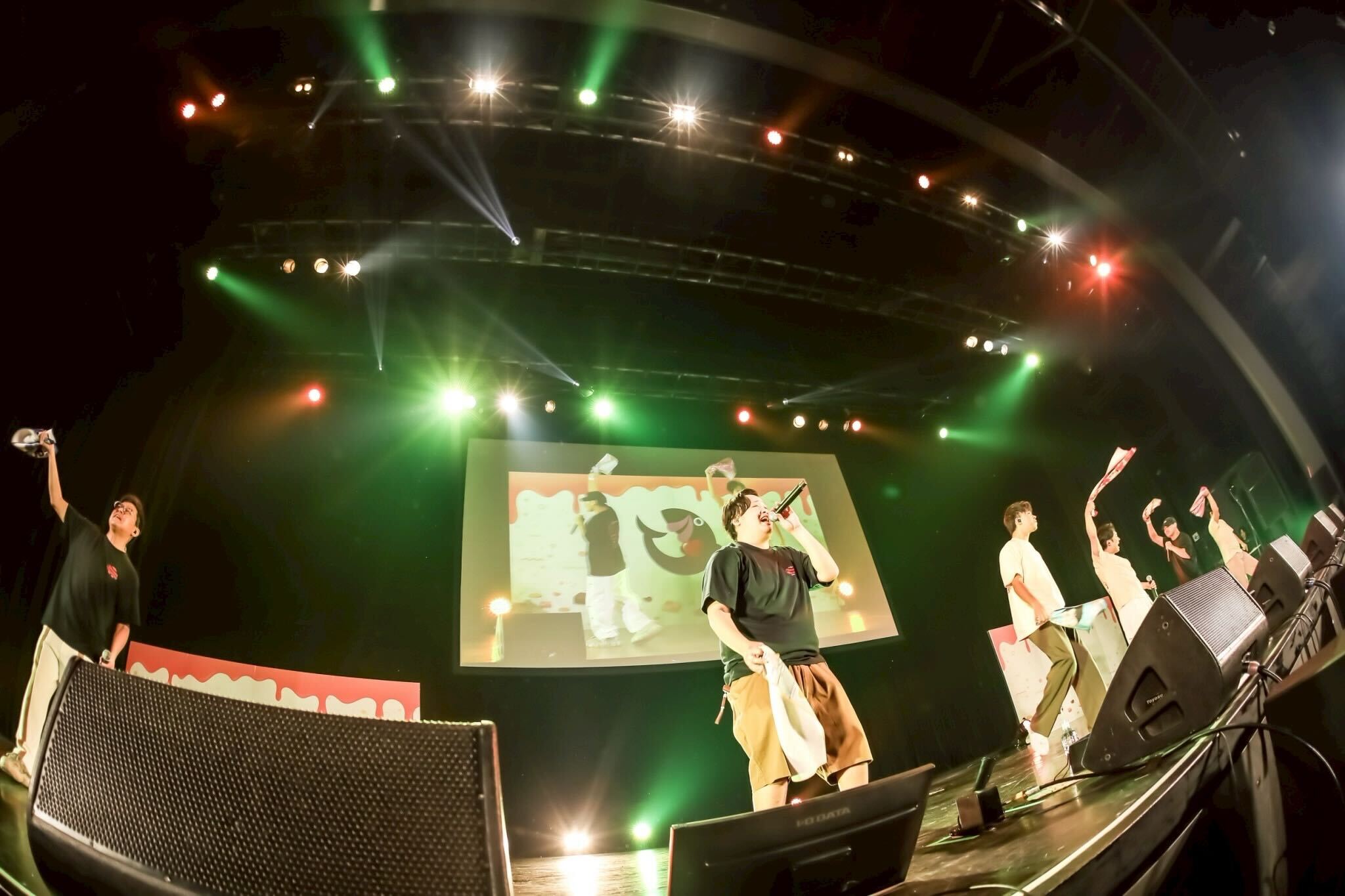 ンダホが客席に向けてホームランを打ち、マサイが時限爆弾を爆発させるなど、ライブならではの演出も。