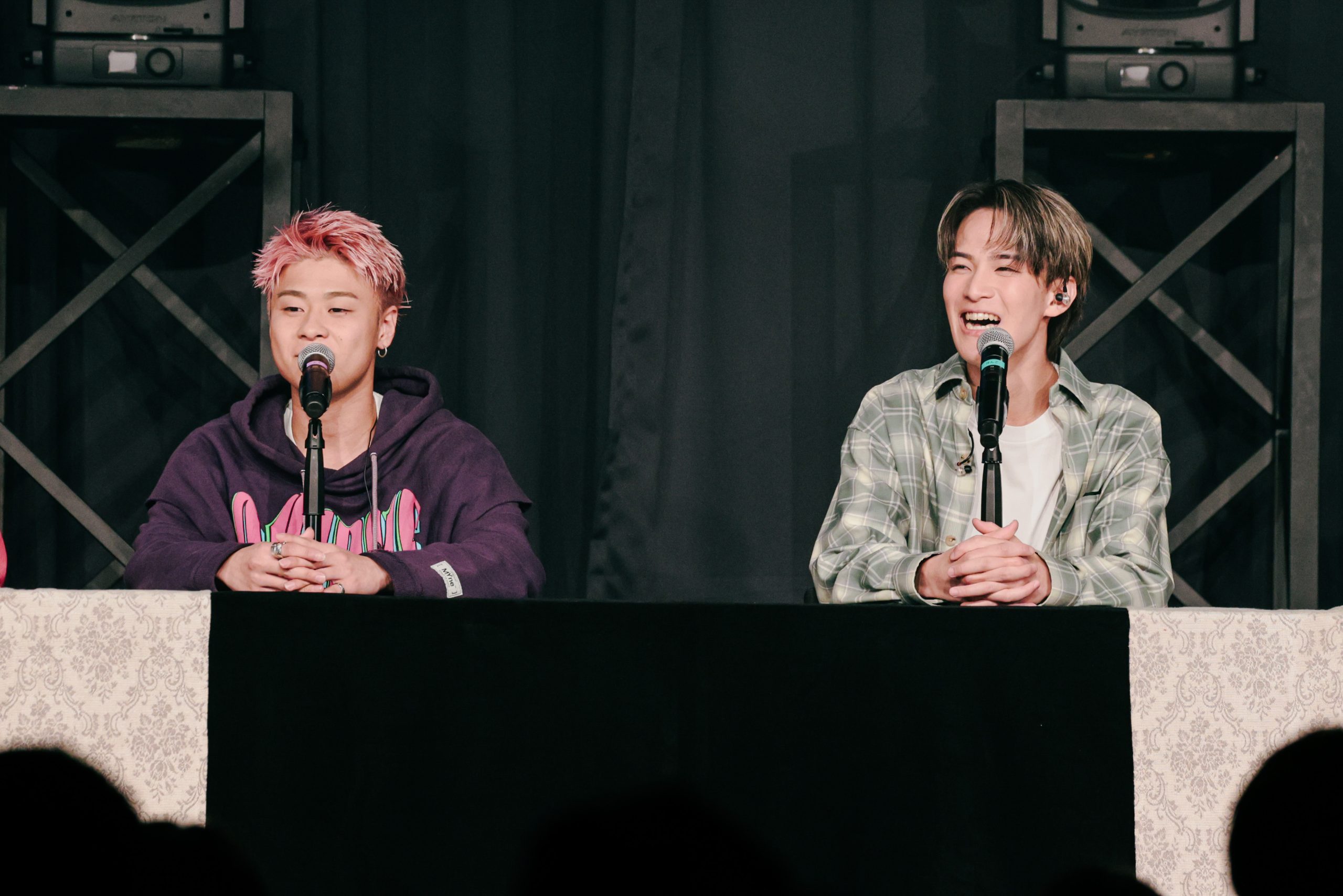また、「お互いの尊敬できる部分を聞きたいです」の質問には、けんごが「MC力に憧れます」と伝え、けーすけの名前を挙げると、ガチヤマも同じくけーすけに一票。ガチヤマが、リスペクトを本気語りする一幕には、顔を真っ赤にして照れるけーすけが愛らしく、思わぬメンバー愛が垣間見られました。