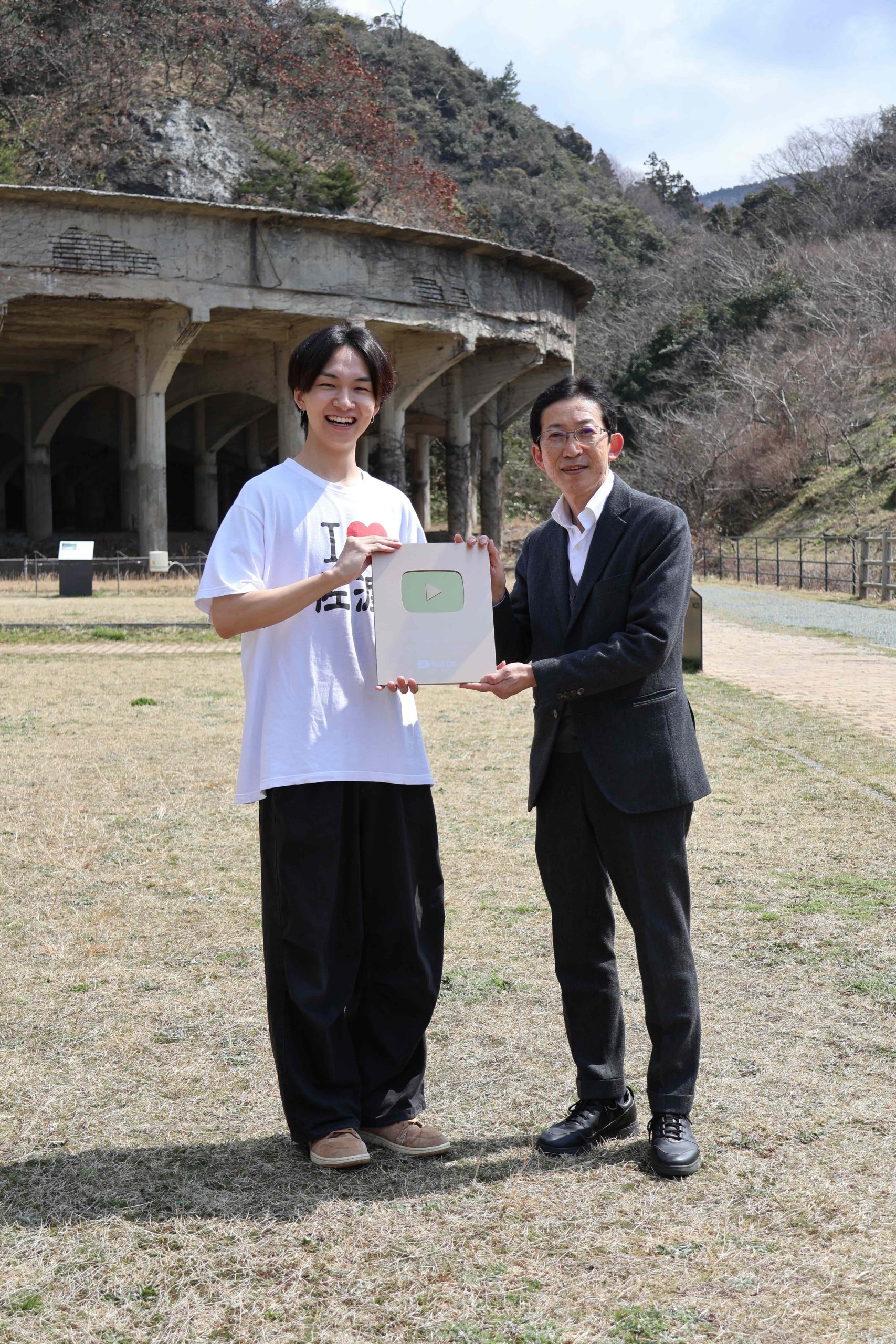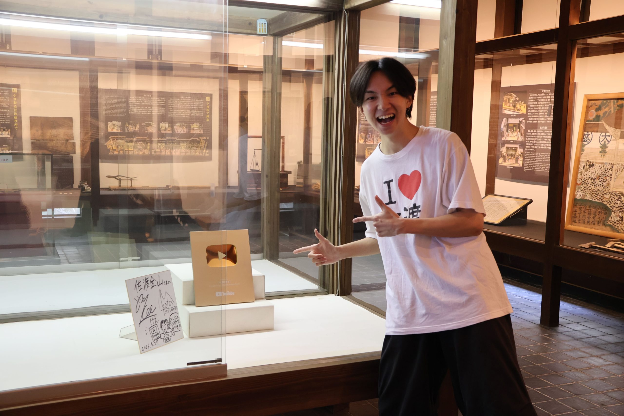 チャンネル登録者数100万人達成を記念して贈られた、けえ【島育ち】の「金の盾」を、故郷・佐渡ヶ島の佐渡金山にある資料館にて特別展示!