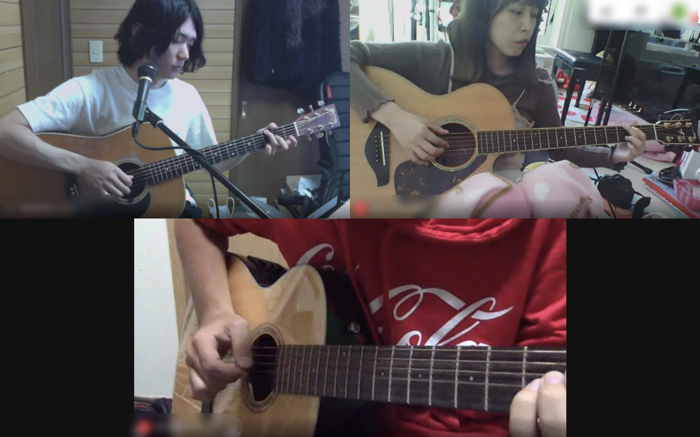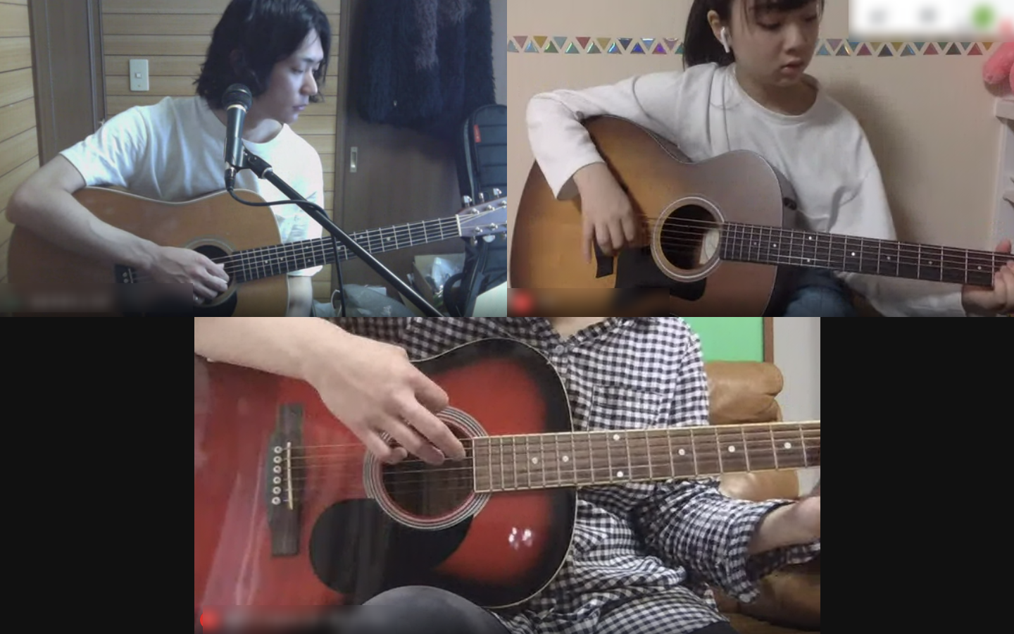 12月からRUUUMで実施しておりましたアコースティックギター講座を、現在オンラインにて実施中です。超初心者コース・初心者コース・経験者コースの3クラスに分かれ、人気の楽曲に挑戦しております。上達に応じてコース移動もあり、経験者コースでは毎回難易度が高い譜面に挑戦しております。