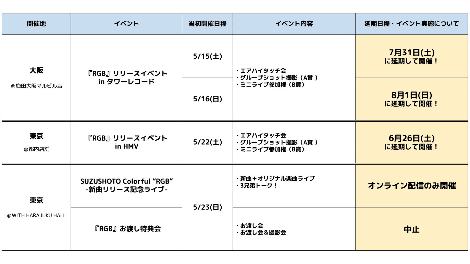2021年5月23日(日)に開催を予定していた『SUZUSHOTO Colorful “RGB” -新曲リリース記念ライブ- 』は有観客公演を中止し、無観客オンラインライブのみの開催とさせていただきます。